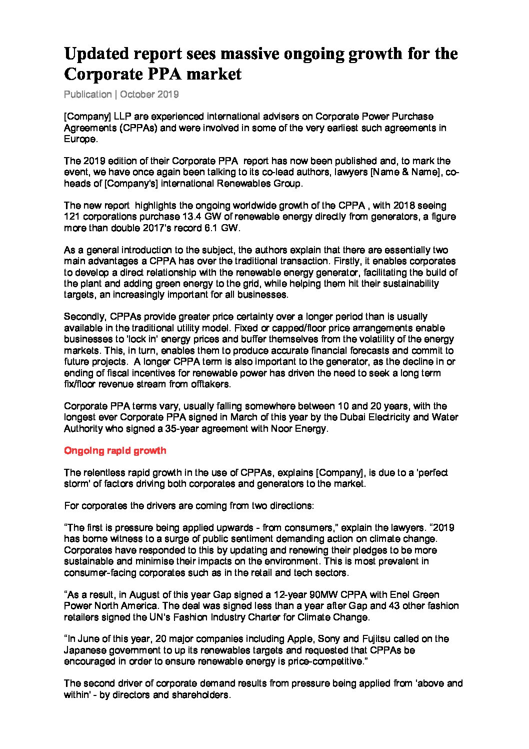 The examples below provide an indication of some of the journalistic material we can create, which is regularly used in newspaper and magazine articles.